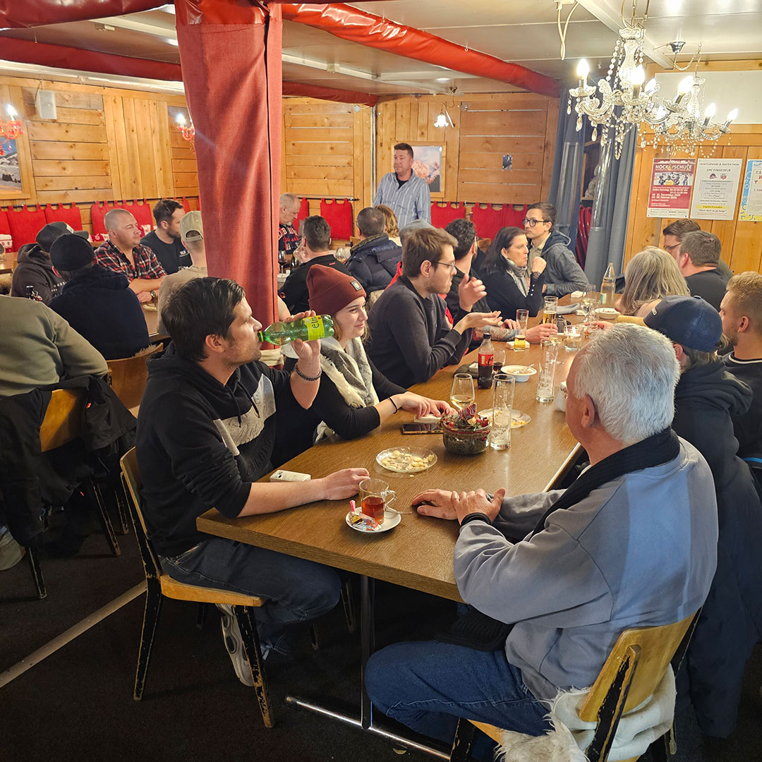 Beim anschliessenden Beisammensein im gemütlichen Eispark-Café klang der Abend bei Fondue und einem guten Tropfen stimmungsvoll aus. Ein herzliches Dankeschön an unsere Geschäftsleitung für die Einladung an diesen Event sowie an alle Teilnehmenden für den wertvollen gemeinsamen Moment abseits des Arbeitsalltags.