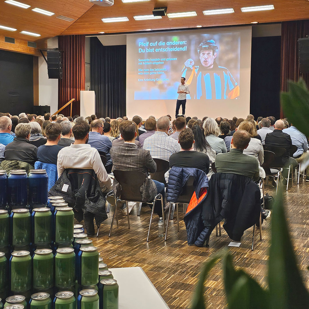 Vom als unmöglich verurteilten Projekt der Milchmanufaktur, über den ursprünglichen Kellerbetrieb des heutigen Marktführers im Maschinen- und Werkzeugbau HLM bis hin zur «Pfeife» des ehemaligen Eishockey-Schiedsrichters und heutigen Coachs Andreas Koch – ein rundum gelungener Cast hochkarätiger Referenten unterhielt die rund 260 Teilnehmenden im Kultur- und Kongresszentrum zwei Raben. Apropos Unterhaltung: Auch die Moderatorin und «Ex-Hiesigi» Esther Schaudt kurbelte mit viel Humor und Insidern aus der Geschichte und dem Alltag Einsiedelns als Moderatorin kräftig die Lachmuskeln an.